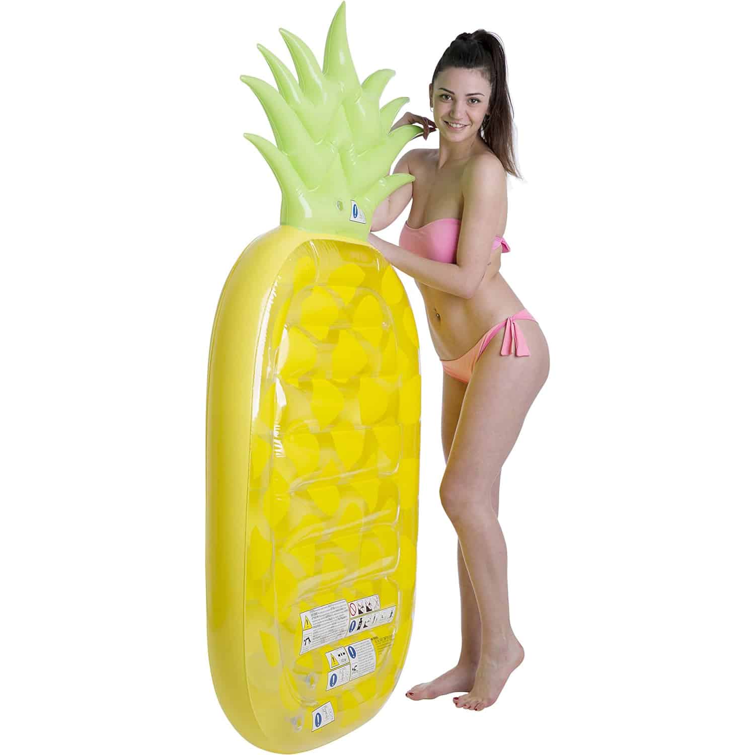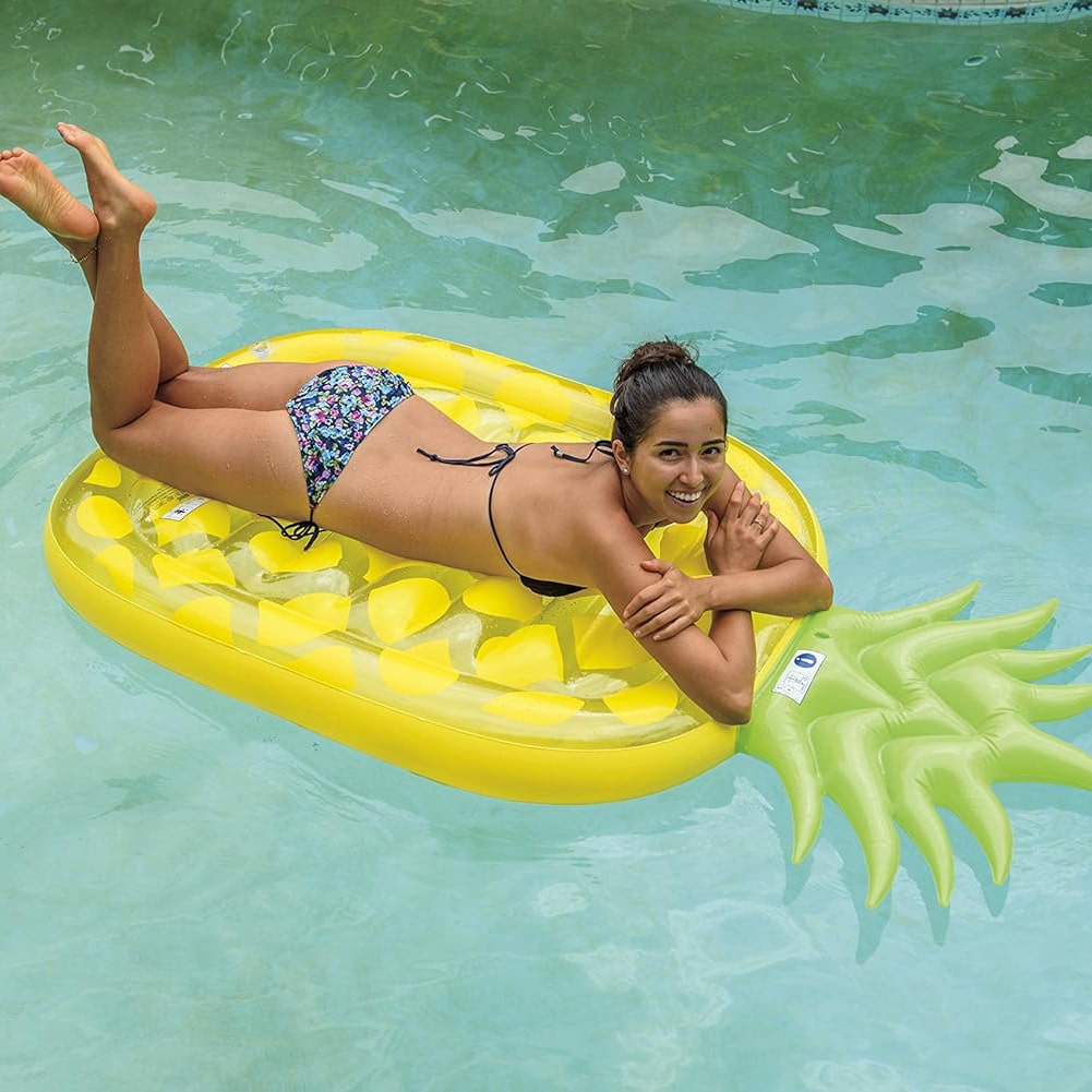 Si estás pensando en comprar un cómodo y original colchón hinchable Jilong para destacar este verano, seguro que te encantará el colchón hinchable con forma de Piña Tropical. ¡Su estampado y su forma son totalmente alusivas al verano! Es muy vistosa gracias a los tonos amarillos y verdes que tiene el diseño y es una forma perfecta de añadir un toque alegre a tus días más calurosos. Por sus medidas, 87 cm de ancho y 190 cm de alto, está diseñado para ser utilizado por una persona mayor de 14 años y soportar un peso máximo de 80 kg. Está fabricado en vinilo de 0,30 mm de grosor extremadamente resistente y es ideal para disfrutar tanto en la playa como en la piscina, ya que está preparado para el agua salada y el cloro. En caso de que lo necesites, incluye un kit de reparación para posibles agujeros o pinchazos que puedan dañar tu colchón. Además, dispone de dos cámaras de aire para aumentar su estabilidad y seguridad. Es hora de disfrutar del verano de la mejor manera posible: ¡con tu colchón Jilong en forma de Piña!