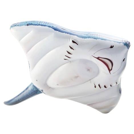 Este hinchable mide 188 x 145 cm y soporta un peso máximo de 40 kg. El diseño del hinchable imita a una Raya, tanto en forma como en colores. En la parte superior tiene tonos grises y negros y en la parte inferior, como la real, es blanca.