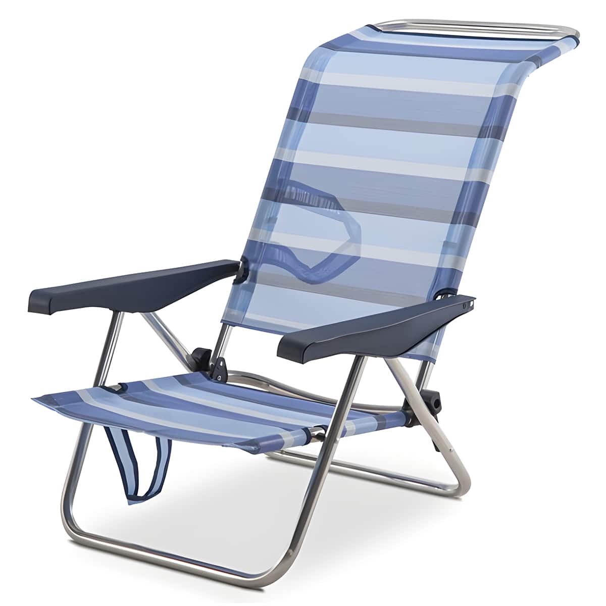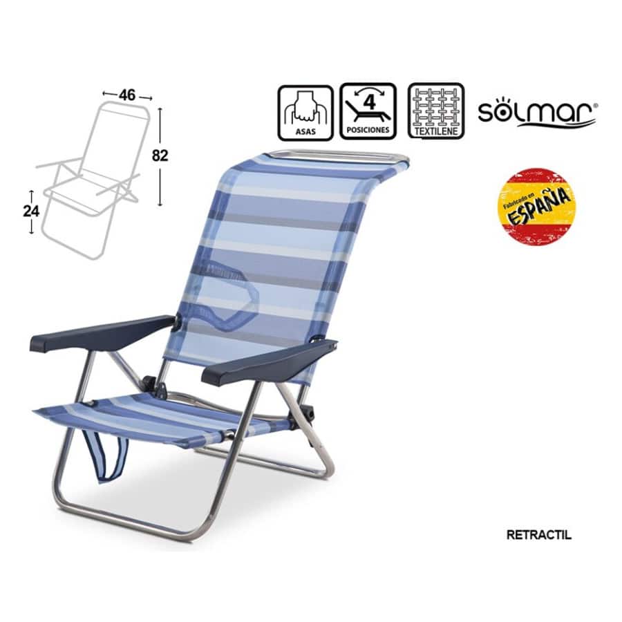 - Silla de Playa de Aluminio Reclinable Irís Rayas Santorini hasta tumbado Solmar;