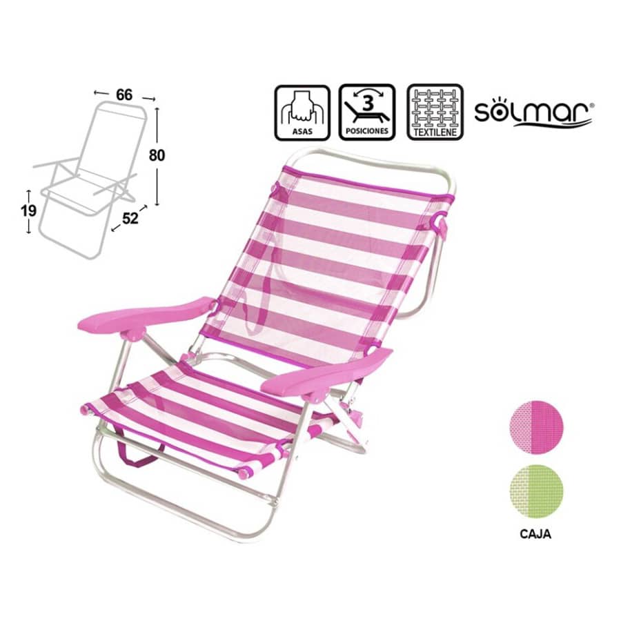 - Silla de Playa de Aluminio Reclinable Vanessa Rayas hasta Tumbarse Solmar;