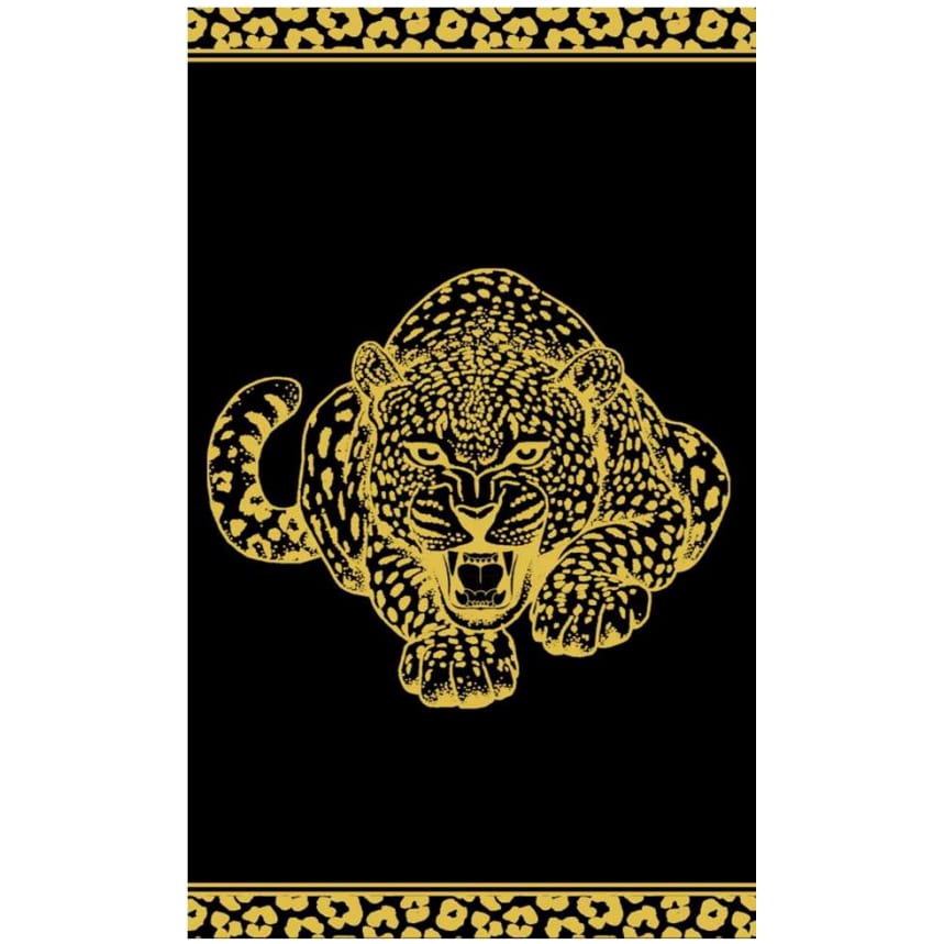 Toalla de Playa Algodón Negra Leopardo Dorado
