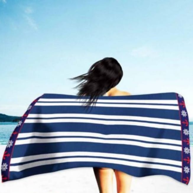 - Toalla de Playa Microfibra Rayas Azules y Blancas con Anclas;
