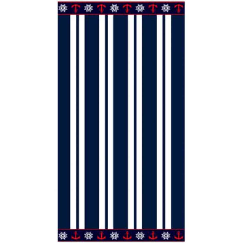 Toalla de Playa Microfibra Rayas Azules y Blancas con Anclas